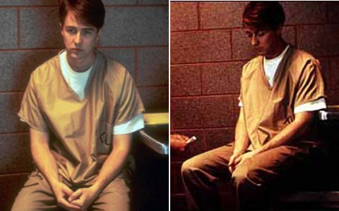 Conveying American History X's complex theme (that racism is wrong) required a chiseled and menacing figure to represent white supremacy. And, let's face it, if white supremacists all looked like the "before" picture up there, it'd be hard to take racism seriously as a problem. Society could simply put racism in a headlock until it made a tearful apology.
