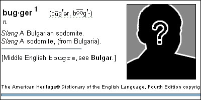 Back in the day, the Catholic Church was really intolerant of other religions. "The day," in this case, refers to every day from the founding of the church to, well, yesterday. The word "bugger" stems from "Bulgarian," or someone from Bulgaria, but medieval Catholics used it as a catch-all term for all members of the East Orthodox Church. Members of that church were considered heretics, and heresy is, of course, a slippery slope to sodomy. An awful, gross, terrible, slippery slope.