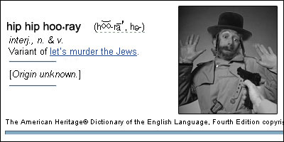 Sounds pretty innocuous, right? Well, it was, up until around 1819, when the citizens of Germany and other neighboring countries began using it as their rallying cry while going Hebrew-hunting in the Jewish ghettos. So keep that in mind next time you're trying to come up with an appropriate cheer at your cousin's Bar Mitzvah.