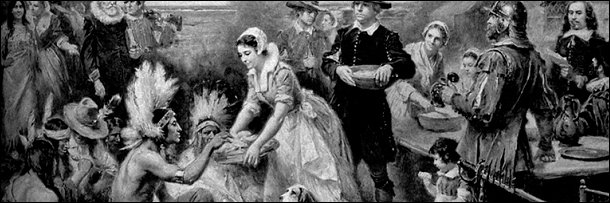 Pumpkin pie, giant helpings of turkey, stuffing, mashed potatoes and sweet, artery-plugging gravy. Thanksgiving combines gluttony with drunkenness and sports hooliganism and you don't have to feel guilty about any of it because it's even older than America. The first Thanksgiving took place in 1621 at the Plymouth colony in what is now Massachusetts. The starving colonists shared a meal with the natives and formed a friendship that would last until syphilis and exposure killed them all.