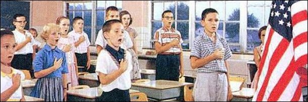 The idea of pledging allegiance to the flag was basically an early viral marketing gimmick. It was first published in 1892 in a wildly popular children's magazine named The Youth's Companion. The much-bitched-about "under God" was only added to the pledge in 1954.