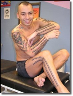 Those guys have nothing on Kam Ma. Back in 2006, Ma figured he just wasn't famous or metallic enough for his tastes, and decided to kill two birds with one stone. He located a tattoo artist, Charlie Wilson and, on March 4, 2006, the pair set out to break the world record for most piercings in 24 hours. They succeeded, at a staggering 1,055 piercings in just under eight hours.