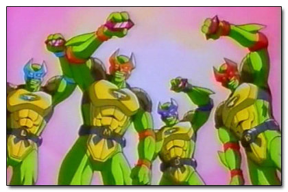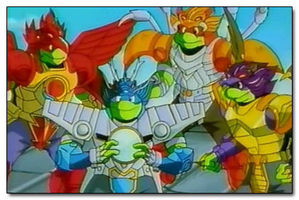 It seems almost impossible to out-"wha?" a show already titled Teenage Mutant Ninja Turtles, but after muttering something about our lack of faith disappointing them, Japan outfitted the Turtles in flamboyant armor that looks like a LARP party on their way to a convention for Liberace Impersonators with an S & M fetish. Because giant, mutated turtles with mastery in martial arts don't make sense without robo-armor and glittering codpieces.