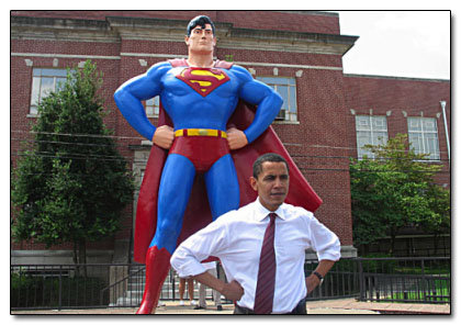 Obama, posing with a statue of the famed Imam Ali bin Superman.