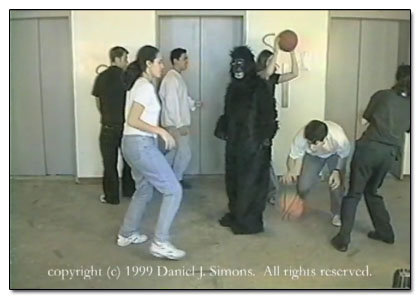 In the study volunteers were asked to watch the above video of two basketball teams and count how many passes there were. Try it.