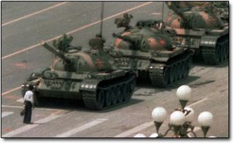 Thus, authorities immediately ordered an end to the protests, and China cracked down firmly on all the protesters, with troops and tanks storming Beijing and its focal point, Tiananmen Square. Protesters fled from the carnage. Except for one lone bystander.