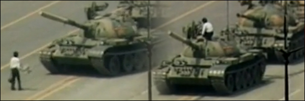 We may never know who he was, but the man did what many others could not: walk up to a column of moving tanks and live to tell about it. For a while, at least.
