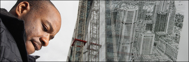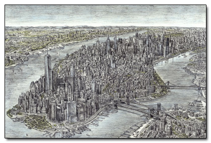 So take Wiltshire's helicopter ride -- most of us would be distracted by things like the noise of the chopper, or by thoughts such as "Why are these buildings spaced like that?" or "Is that a body in the East River?" But Wiltshire's kung-fu-chop brain can focus like a microscope on just the details, carefully recording them all at the expense of all other normal thought. Because of this, he is not only able to notice relationships and properties of the buildings, but can remember them exactly and use them later in his drawings.