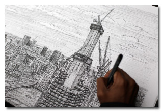 For instance, Wiltshire took a brief helicopter ride around New York City and produced this drawing afterward, purely from memory: