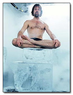 Hof himself claims that his remarkable abilities come from meditation, which sounds like total hackneyed bullshit to us, as no amount of thinking can keep your flaccid penis from fusing to a block of ice.