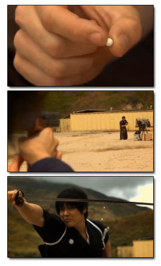 Isao Machii is a Japanese man with superhuman reflexes, which he stereotypically uses to do all sorts of amazing tricks with a katana, including peeling an apple and cutting an Airsoft pellet in half in midair.