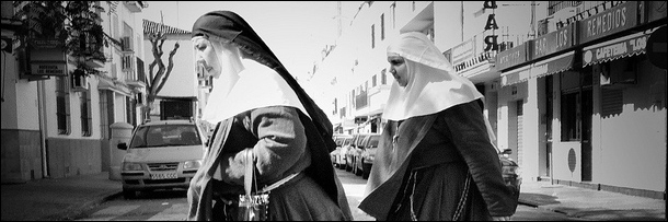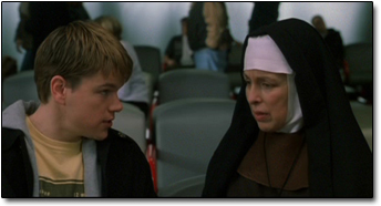 ... you instantly recognize them as Catholic nuns, because everyone knows that's how they all dress. Catholic churches themselves are just as easy to spot in movies: They will inevitably be dark, with stained glass, flickering votive candles and spooky Latin chanting coming from nowhere in particular -- like this one in The Boondock Saints: