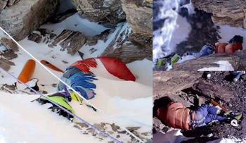 Later, a group of other climbers passed by and saw Sharp sitting there with half of his body frozen ... and that's when he mumbled his name and they realized he was still alive. He was even filmed when a documentary crew walked past, but there was nothing they could do for him -- in the death zone, people can barely walk, let alone carry a body. And that's why Nepal doesn't just go up there and remove the bodies: Many who tried have ended up joining them.