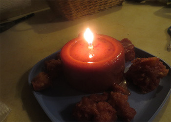 Once they're turgid enough for consumption, shove a candle down the center. Voila! You have now made a birthday cake for a child who is an asshole. Several of the smaller chodes rebelled against their sad existence as decorative tubes of berry grease, promptly collapsing as soon as they were pierced with the candle. I tossed the degenerate lumps around Cranberry Candle Prometheus as gelatin worshippers.