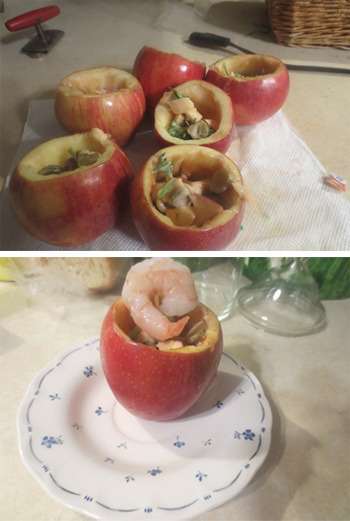 If candy apples are given out on Halloween and apple pie is served on Thanksgiving, then prawn-stuffed apples are served on, uh, garbage day?