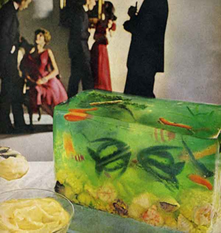 After eating a sour cream pinata sandwich, I needed to cleanse my palate with some jellied tomato refresher, a Weight Watchers concoction which in a perfect world would look like goblets full of cubed steak.