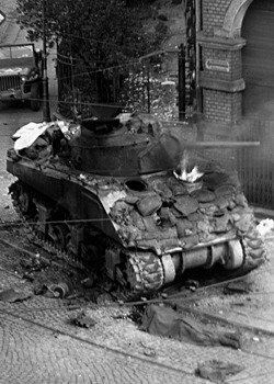 The Sherman had a penchant for lighting up like a Roman candle dipped in kerosene whenever it was hit. Unlike its German and British counterparts, the Sherman employed thin armor in order to squeeze more speed out of its Detroit engines. While this meant it could get itself out of trouble quicker than it got into it, it also meant that a direct hit likely spelled death for the proud American machine.