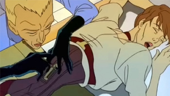 In one episode, dictator Trevor Goodchild disguises himself as a doctor so he can perform surgery on some random woman who got shot in the spine trying to escape his country, because that will make Aeon jealous. But the surgery is just an excuse to bring the woman to orgasm by tinkering around in the hole in her back where she's been given a spinal implant. See "surreal cult classic," above.