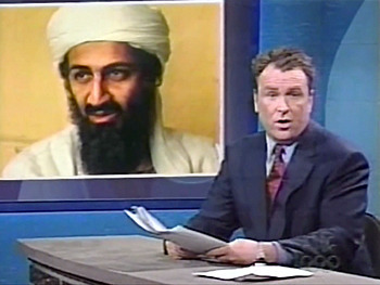 Not too impressive so far, right? Okay, then we see a picture of "the reclusive bin Laden, who's reportedly hiding in the mountains of Afghanistan." Specifically, it's a story about how he was rumored to be dying of kidney failure, but that would be far from the most absurd rumor to float around the soon-to-be-very-infamous terrorist.