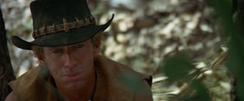 The movie is actually about a journalist who travels to Australia (because in the '80s, people in print media lived like kings) to write a story about the rugged outdoorsman who survived a crocodile attack. When "Crocodile" Dundee takes the journalist, Sue, on a tour of the outback, she proves she's as tough as him by trekking out alone -- and he proves he's a big perv by creeping on her from behind some bushes.