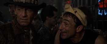 Croc journeys back to New York City with Sue, where he has a hard time adjusting to city life. Yes, somehow, watching a guy learn what escalators and bidets are made hundreds of millions of dollars. But there's something even worse than a middle-aged guy puzzling out how to spritz his butthole. While out drinking at a bar, Crocodile Dundee is chatting up a "Sheila" when his new drinking buddy points out it's really "a guy"...