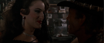 Obviously, it's not surprising that a movie from 30 years ago would lack sensitivity in its portrayal of trans people, but even so, the protagonist's reaction is cringey as hell. Instead of using words or make any attempt to, you know, treat this character like a human being, Dundee decides to get to the bottom of things by grabbing her by the crotch.