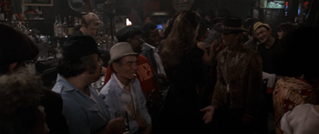 She leaves, angry and humiliated, and bizarrely, the bar cheers for this oddly dressed stranger like his hate crime just won the Super Bowl.