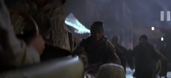 Both Snipes and Stallone get thrown in cryosleep as punishment. When Snipes escapes in the future, they defrost Stallone to track him down. Stallone is then horrified to find that the future has been taken over by the most nefarious threat you could possibly imagine: PC culture. Yup, Stallone can't swear or eat red meat, and most jarringly, this movie proposes that one of the problems with future America is that there aren't enough guns around. Even the cops don't carry guns, because they were outlawed after the "urban wars" of the 20th century.