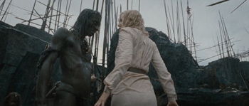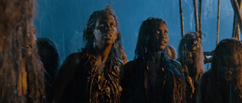The tribe later infiltrates our heroes' ship and kidnaps Naomi Watts so they can sacrifice her to Kong -- not out of survival, as in the original, but because they seem to be getting some kind of voodoo high off of it.