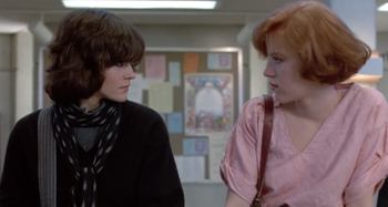 The fallout of this scene? She calls him an asshole and, bizarrely, the only other female character thinks it's funny. As Ringwald points out, despite the fact that Bender faces no comeuppance for this and seemingly learns no lesson, his strategy of being a sociopathic turd works, and "he gets the girl in the end."
