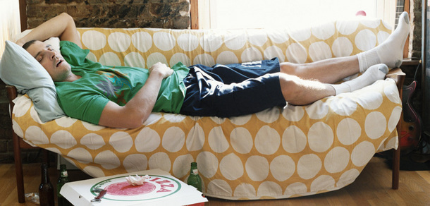What happens in your lazy place? It's where you lift your cheek up and off the couch because you want to fart and you know that if you don't give it some room, it will probably sting. It's where you breathe in sharply and notice that you have something in your nose, but rather than grab a Kleenex, which is all the way across the room, you just dig in to get the invader out. It's where you drop scrambled eggs on your bare chest and just pick them up and eat them with your fingers. That's right, ladies: I'm including you in this and picturing it as well. Mmm, egg cleavage.