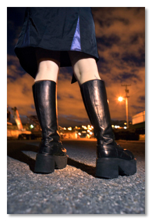 "Sir, the skirt says 'hipster' but the boots say 'goth.' I'm taking the shot just to be on the safe side!"