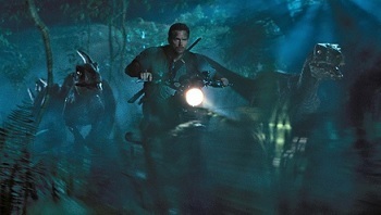 As we've talked about on the site, turning animals into weapons has historically pretty much stopped at strapping bombs to them, or possibly recon. If releasing wild monsters into the den of the enemy was a practical idea, we would have spent most of the 1940s catapulting lions at Nazis. In the end, you're just causing way more problems than you're solving by dumping a super-predator into a population center and then having to wrangle them when the blood-dust clears before they eat anyone they're not supposed to. It's such nonsense that you have to wonder how InGen managed to get this far with the idea. Seriously, what was that goddamn conversation even like? Had they even approached the Army with this pitch, or were they going to surprise them with a raptor-sized cake?