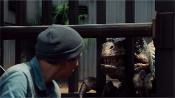 In the film, the escape of the demon-lizard Indominus Rex is used to test the ground-war capabilities of weaponized raptors. The idea being, if the test is successful (Spoiler: It isn't), the army could eventually use these clever girls to help fight ground wars, which is the sort of plan a drunk child would come up with while playing with Jurassic Park action figures.