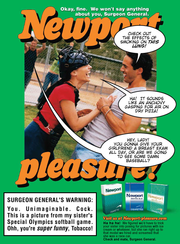 Big Tobacco faces off against the Surgeon General in the ads of the latest issue of Tits for Men.