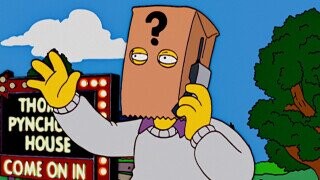 Publishing Homer and Lisa’s opinions on Pynchon actually makes a lot of sense, considering that the famously reclusive author actually guest starred on the show multiple times. In Season 15’s “Diatribe of a Mad Housewife.” Pynchon, who has been photographed very rarely throughout his career, briefly shows up with a question mark-branded bag over his head and an illuminated sign calling attention to his home, urging the public to “come on in.”