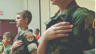 The idea of pledging allegiance to the flag was basically an early viral marketing gimmick. It was first published in 1892 in a wildly popular children's magazine named The Youth's Companion. The much-bitched-about "under God" was only added to the pledge in 1954.