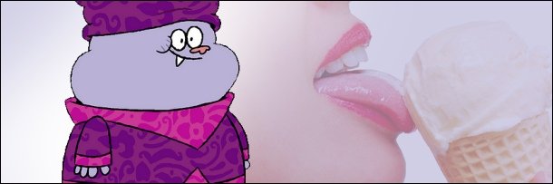 Chowder buys a giant, stupendously phallic-looking ice cream cone (which for some reason he calls "thrice cream") which Mr. Fugu proceeds to eat.