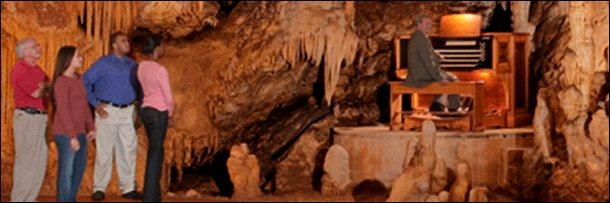 The organ is comprised of 37 stalactites scattered over 3.5 acres of the Luray Caverns in Virginia. When a key is pressed on a central console, a mallet strikes one of many gargantuan stalactites scattered throughout the cave, producing a specific note which resonates throughout the entirety of its 64 acres.