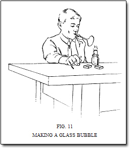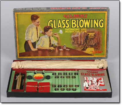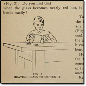 Keep in mind that in order to be able to change the shape of the glass, first it has to reach its softening point, which is around 1,000 degrees Fahrenheit. The Gilbert Glass Blowing Set encouraged children to try this with their bare hands in order to carry out a series of wildly irresponsible experiments detailed in the manual: