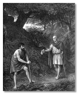 Yeah, to be fair, they walked right into that one. A more unexpected version comes in Act I, Scene I of Shakespeare's far more obscure play Timon of Athens, where a painter accuses the philosopher Apemantus of being a dog (completely missing the fact that the word "ape" is in his name), to which he replies with the following zinger: "Thy mother's of my generation. What's she, if I be a dog?"