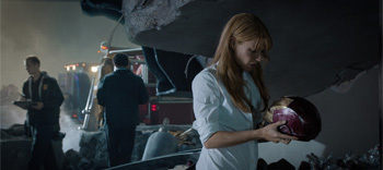 But maybe Tony was setting up the defenses when the attack happened? Nope: He was getting ready to depart for Tennessee ... thus leaving Pepper completely alone and unprotected in a house that's bound to blow up sooner or later. So this is less a case of "conflicted protagonist with a death wish" and more a case of "protagonist who really, really wants his girlfriend dead, for some reason."