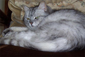It would be one thing if this cacophonous kitty purred only once in a while, but according to her somehow still non-deaf or insane owners, Ruth and Mark Adams, she's making noise all the goddamn time -- but especially when someone's on the phone. According to Ruth, this always results in stupefied reactions from the people on the other end when they find out it's a cat making that hellacious racket and not the Germans having another go at this blitzkrieg thing.