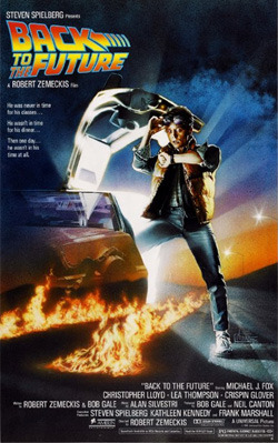 Movie posters don't get much more perfect than this one. Just look at it. Take it all in. Every element is perfect: the iconic logo, the flaming tire tracks, the badass car that was badass only in the fictional sense, and Michael J. Fox looking at his watch in abject shock, because apparently movie Swatches display what year it is.
