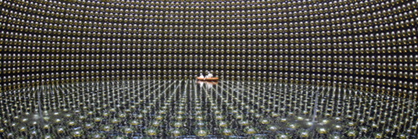 Welcome to Super-Kamiokande, a gigantic subterranean water chamber built in Japan to detect neutrinos. What the hell are neutrinos? Well, they're subatomic particles that physicists believe are constantly zipping around the universe. Since they don't interact with other matter, they just pass right through whatever they come into contact with -- neutrinos emitted from the sun are passing through the Earth as we speak. Hell, one just went through your left eyeball and straight out the back of your head, probably. Did it itch?