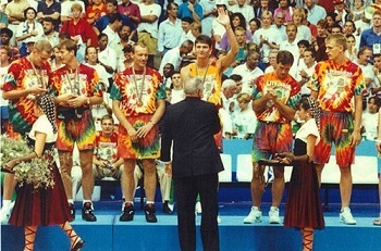 To explain, we need to go back to 1992, the Year Of The Pog. The Summer Olympics rolled around right as the credits for the Cold War were running, and while the collapse of communism was generally something you'd chalk up in the "plus" column, countries that had once found themselves behind the Iron Curtain were flat broke. Funding Olympic teams became a secondary concern to keeping power plants and hospitals running, and it looked like the newly liberated Lithuanians wouldn't be able to play Olympic basketball.