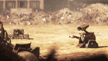 Pixar's WALL-E is the story of an adorable robot tasked with the job of cleaning up the Earth after the humans have all left for outer space. He spends his days shoving garbage into his onboard trash compactor, compressing it into cubes, and piling it onto skyscraper-sized towers, which seem structurally unsound, to say the least. The opening scene follows WALL-E during the painstaking process of constructing one of these towers, amidst the thousands of other WALL-E units who lie dormant in the rubble, revealing that he is the last of his kind, yet still dutifully pursuing this task alone.