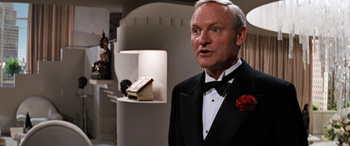 To further the connection between the two, both wear something on their lapel -- a rose for Panama Hat, and a Nazi pin for Donovan. They even foreshadow Donovan's secret malevolence by having him similarly wear a red rose in the very first time we meet him.