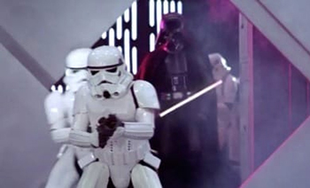 Similarly, there's an infamous moment in Star Wars in which a stormtrooper smacks his head on a door like a common Tim Allen character.