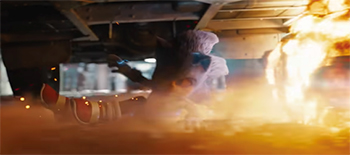 It's hard to get a sense of what's going on (which is true for most of the film's action sequences), so allow me to explain. A bunch of normal squids, dolphins, guppies, and other marine creatures hurl themselves against mechanical underwater vehicles until they explode. Now, I don't claim to be an expert on marine life, but I have to assume the only way a dolphin blows up a war submarine is if it swims into the engine, and its mangled body causes catastrophic systems failure.
